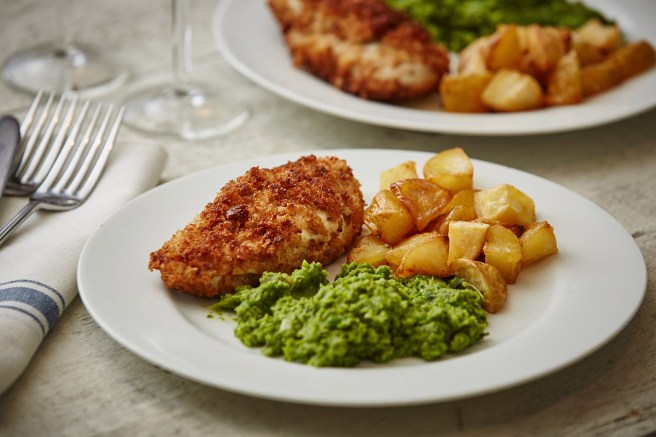 Gluten free challenge started this week with lots of lovely recipes to try including this Chicken Kiev with mini potatoes and pea and mint puree