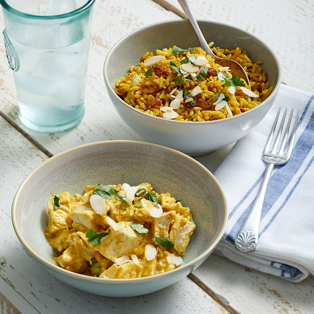 This weeks challenge starts off with a favourite of our family, Good old Coronation chicken. It can be eaten hot or cold and this time I’ve paired it with a spicy rice.